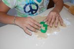 Sprinkle surface where you will roll out dough with powdered sugar.  Remove 1 wrapped pack of dough from refrigerator at a time, sprinkle rolling pin with powdered sugar, and roll out dough to ¼ -inch thick.  Move the dough around and check underneath frequently to make sure it is not sticking.  If dough has warmed during rolling, place back in refrigerator for 10 minutes to chill.  Cut into desired shape, place at least 1-inch apart on greased baking sheet and bake for 7 to 9 minutes or until cookies are just beginning to turn brown around edges, rotating cookie sheet halfway through baking time.  Let sit on baking sheet for 2 minutes after removal from oven and then move to complete cooling on wire rack.  Serve as is or ice and decorated as desired.  Store in a airtight container for up to one week.